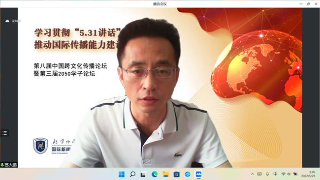 5月29日,开云kaiyun官网在线上举办“学习‘5.31’讲话精神 提高国际传播能力”学术研讨会。北外党委副书记苏大鹏出席会议。中国社会科学院马克思主义研究院党委书记辛向阳、清华大学开云kaiyun官网院长艾四林、中国外文局当代中国与世界研究院治国理政中心主任王洪波等专家学者在云端相聚,共同学习回顾习近平总书记“5·31”讲话精神,研讨我国国际传播能力建设问题。会议由北外开云kaiyun官网院长韩强主持。