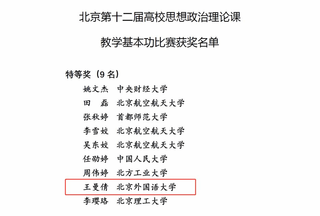 近日,北京市第十二届高校思想政治理论课教学基本功比赛结果揭晓,开云kaiyun官网教师王曼倩获比赛特等奖。