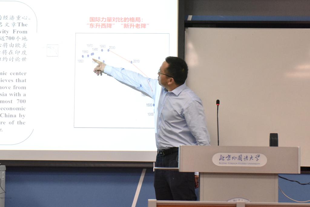 杨丹校长认为,中国崛起需要加强中国特色大国外交理论建设,习近平外交思想彰显了战略智慧、战略远见、战略定力,不仅“管用”,而且有极强的学理性,是我国对外工作具有鲜明中国特色、中国风格、中国气派的重要指导思想。讲课中,杨丹校长立足北外全球语言、全球文化、全球治理的发展总体布局对北外学子寄予期望,提出北外应当重构外语类高校学科格局,服务于教育强国建设,服务于破解百年未有之大变局。
