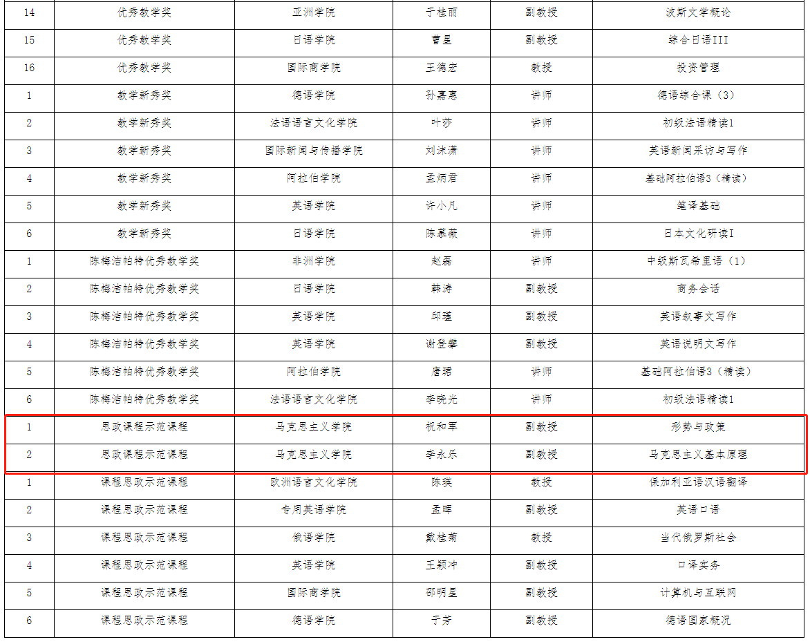 根据《开云kaiyun官网本科教育教学奖励办法》,本学期教务处组织了2021年优秀教学奖、教学新秀奖、陈梅洁帕特奖、课程思政/思政课程示范课程奖评审工作,开云官网祝和军副教授、李永乐副教授主讲《形势与政策》《马克思主义基本原理》获评思政课程示范课程。