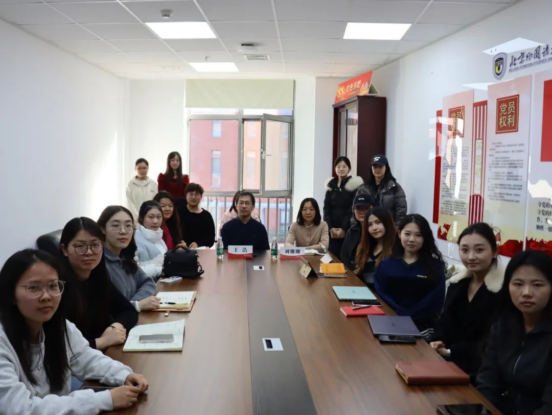 最后,研会指导教师进行总结。刘珊珊表示学院研会的工作正有条不紊地推进。宣传部应进一步优化公众号运营工作,确保社团动态与学术成果能够及时、准确地发布。学术部应精心策划征文活动,引导更多同学关注生态文明领域的研究,激发同学们的学术热情与探索精神。王浩强调了本学期学院重点工作和研会活动的关联性。他提到,研会应紧密结合学院专业特色,围绕纪念抗日战争胜利80周年等重大历史节点,精心筹备并开展一系列兼具深度与影响力的活动,全力打造具有北外马院特色的品牌活动。同时,研会要积极拓展活动的广度与深度,主动走出校园,加强与京内高校马院的交流合作。
