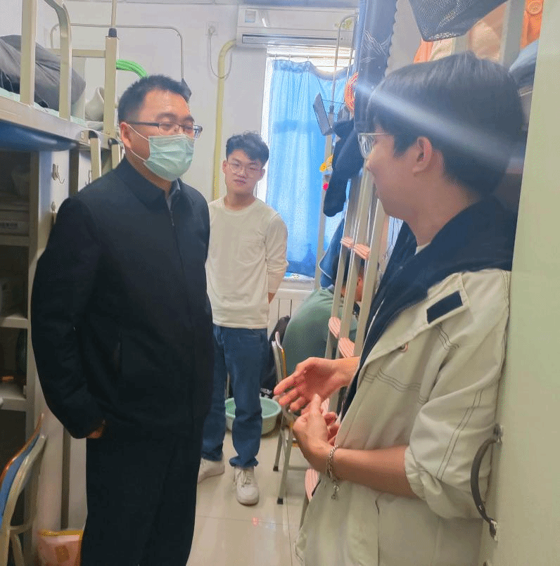 近日,为加强宿舍安全管理,排查宿舍安全隐患,营造良好的学习生活环境,开云kaiyun官网党总支书记祝和军老师、学生辅导员刘珊珊老师、办公室孟蔓老师带队深入学生宿舍走访慰问,了解学生宿舍基础设施、环境卫生、消防安全情况,并与同学们亲切交流。