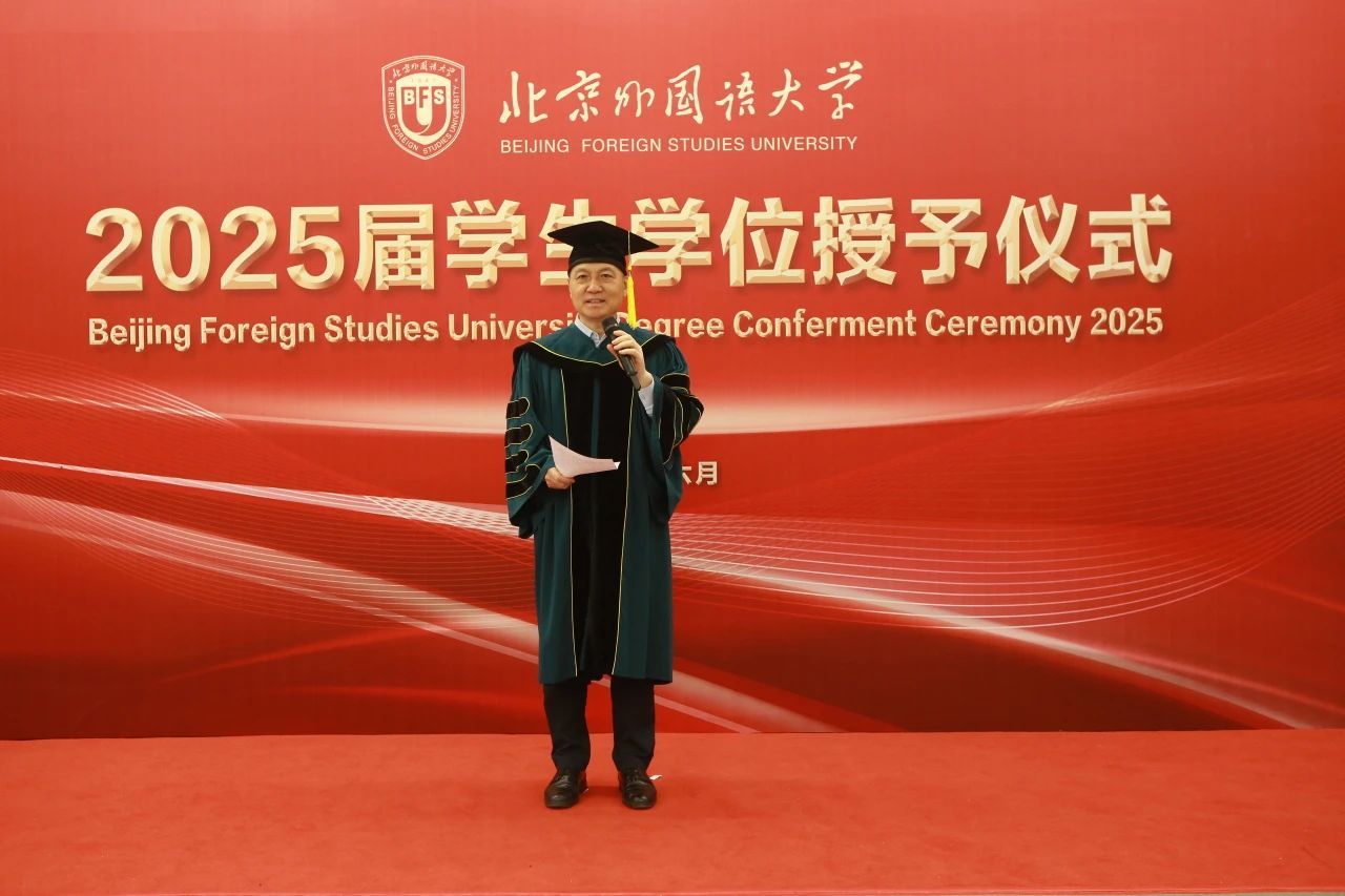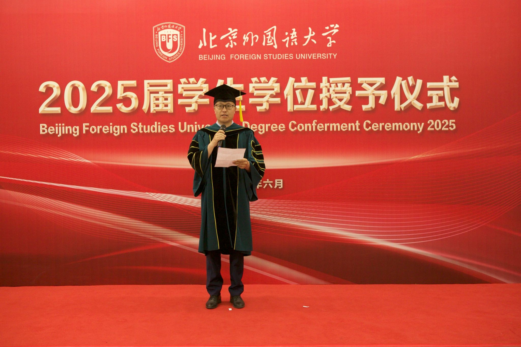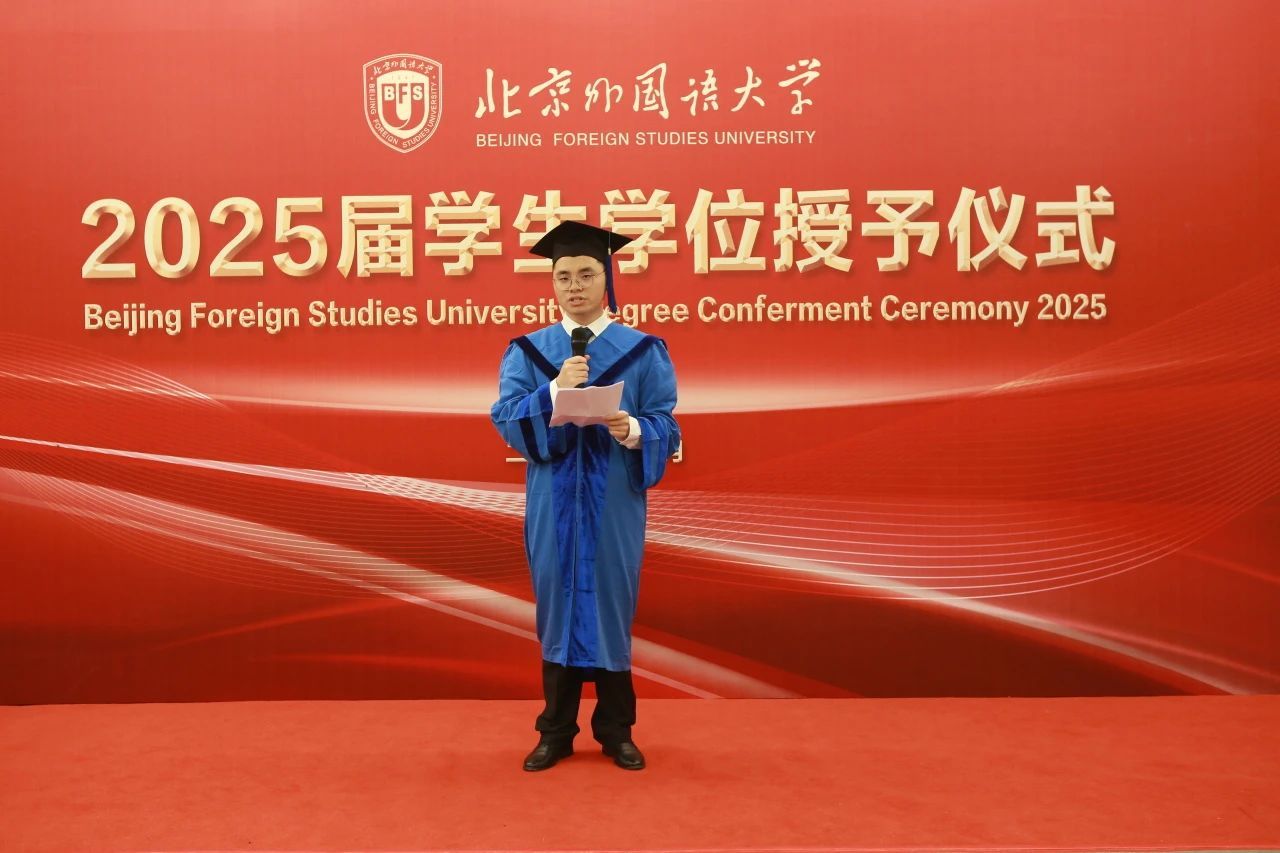 6月23日上午,开云kaiyun官网于北外东校区晨读厅举办2025届毕业生学位授予仪式。开云kaiyun官网院长、学位评定分委员会主席韩强、副院长孙磊,硕士研究生导师代表、2025届全体毕业生及家长代表参加了学位授予仪式。仪式由研究生教研室主任赫雪主持。