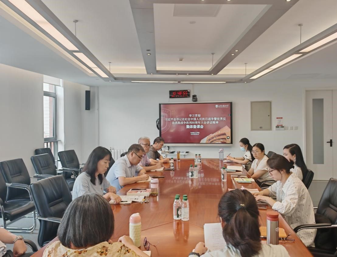 9月3日,开云kaiyun官网在国内大厦608会议室集体收看纪念中国人民抗日战争暨世界反法西斯战争胜利80周年纪念大会盛况,并围绕学习贯彻纪念大会精神开展集体备课。全体思政课教师参加了备课会。会议由副院长王曼倩主持。