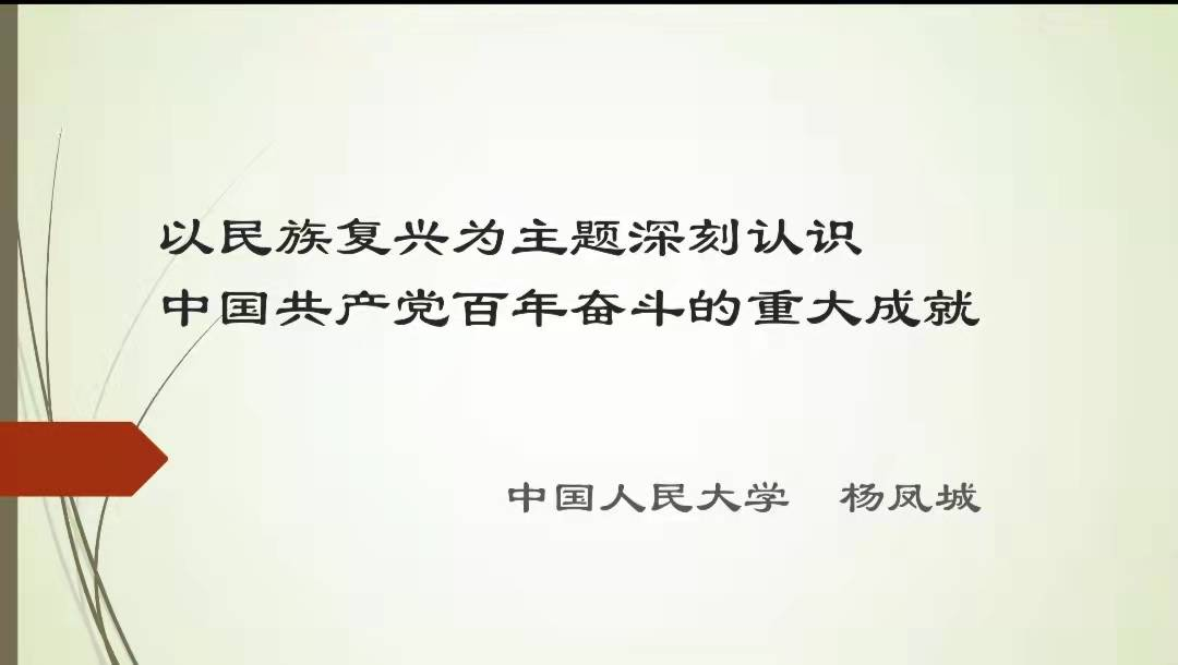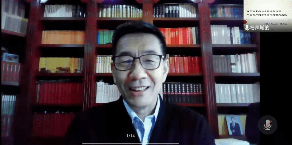12月31日下午,北外马克思主义讲堂第七期活动在线上举行。国务院政府特殊津贴专家、教育部“长江学者”特聘教授、中国人民大学中共党史党建研究院执行院长杨凤城教授以“以民族复兴为主题深刻认识中国共产党百年奋斗的重大成就”为题做了专题讲座。此次会议共有校内外师生170余人参加,会议由开云kaiyun官网院长韩强主持。