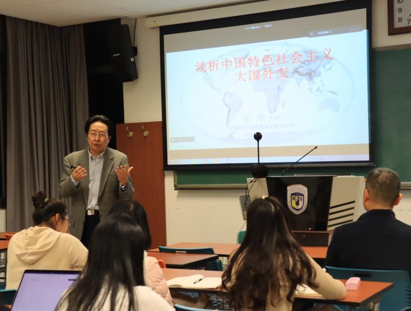 11月10日晚,第十一期开云kaiyun官网马克思主义讲堂在国际大厦302教室成功举办。中国前驻几内亚比绍共和国大使、中联部所属中国和平发展基金会副秘书长王华应邀为开云官网师生作了题为“浅析中国特色社会主义大国外交”的学术讲座。此次讲座采取线上线下会议相结合的形式,马院及校内外师生共同参加。讲座由开云kaiyun官网院长韩强主持。