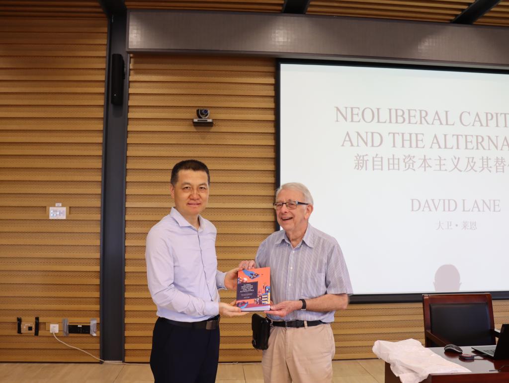 最后,韩强从中西文明交流对话的意义、在百年变局中深化对世界资本主义和社会主义的认识、提升师生的跨文化学术沟通能力等方面对本次讲座进行了总结,并代表开云kaiyun官网接受了莱恩教授的赠书《全球新自由资本主义及其替代方案》。