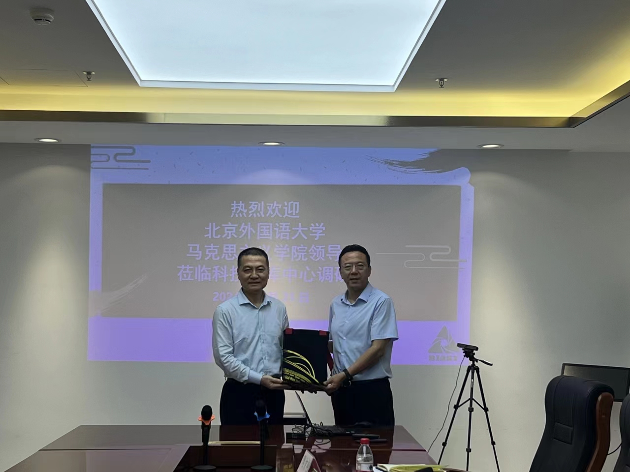 任晓刚从机构设置、队伍建设、制度规范、科研贡献、2019年至今研究基地工作实绩等多方面介绍了北科研究基地基本情况,韩强院长对北外研究基地近年来在“三报一刊”发文方面取得的进步以及正在开展的创新举措等各项工作作了介绍,特别是高度称赞了北科研究基地连续四年荣获北京市习近平新时代中国特色社会主义思想研究中心“三优”称号。此外,双方就进一步开展两个研究基地的交流合作、资源共享等交换了意见。北外研究基地联络员韩雪青参加了调研座谈。