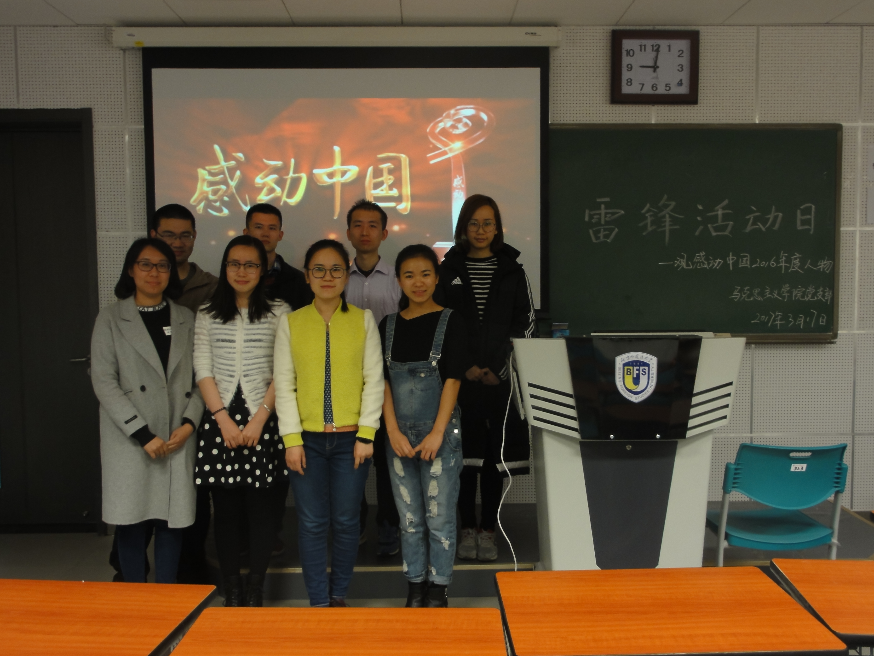 在第54个“学习雷锋纪念日”到来之际,为了弘扬雷锋精神,唤醒大学生内心的真善美,2017年3月17日晚7:00,开云官网学生党支部在西院综合楼313教室开展了“雷锋活动日”主题活动,此次活动的主要内容是组织同学们观看《2016年度感动中国十大人物颁奖晚会》,活动由学生支部书记何宜儒主持召开。