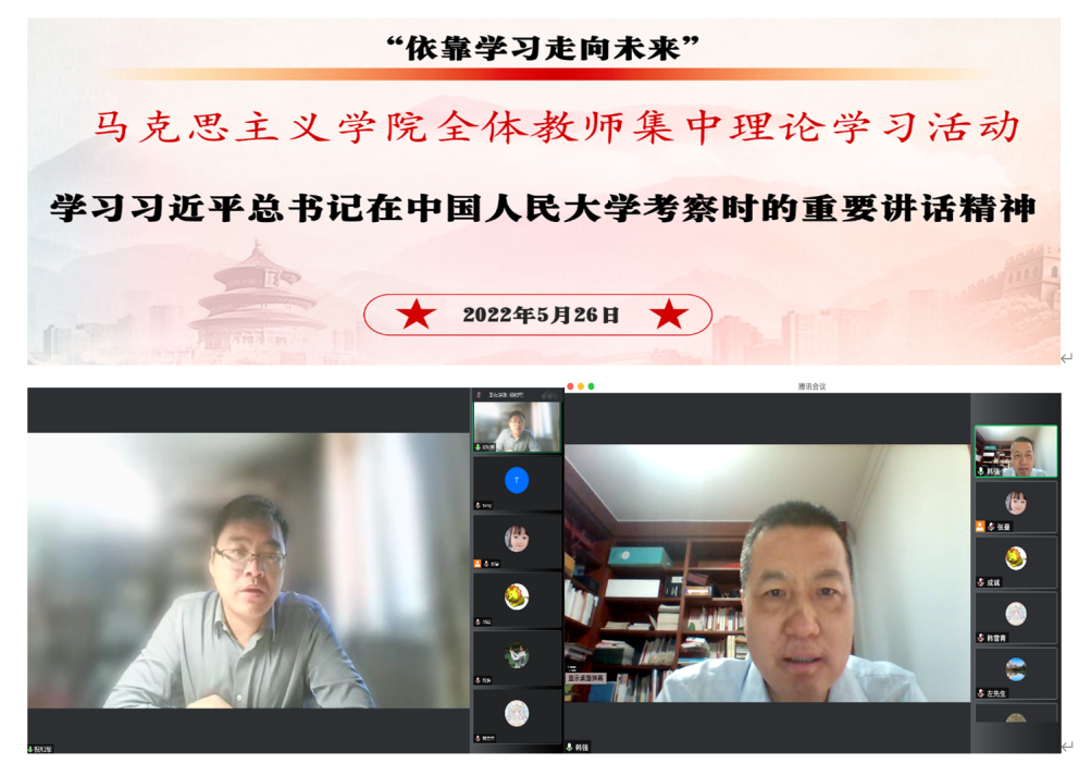 5月26日上午,开云kaiyun官网举办全体教师集中理论学习活动,专题学习习近平总书记在中国人民大学考察时的重要讲话精神,活动由教工党支部书记张曼主持,人事处处长刘博然参加学习活动。