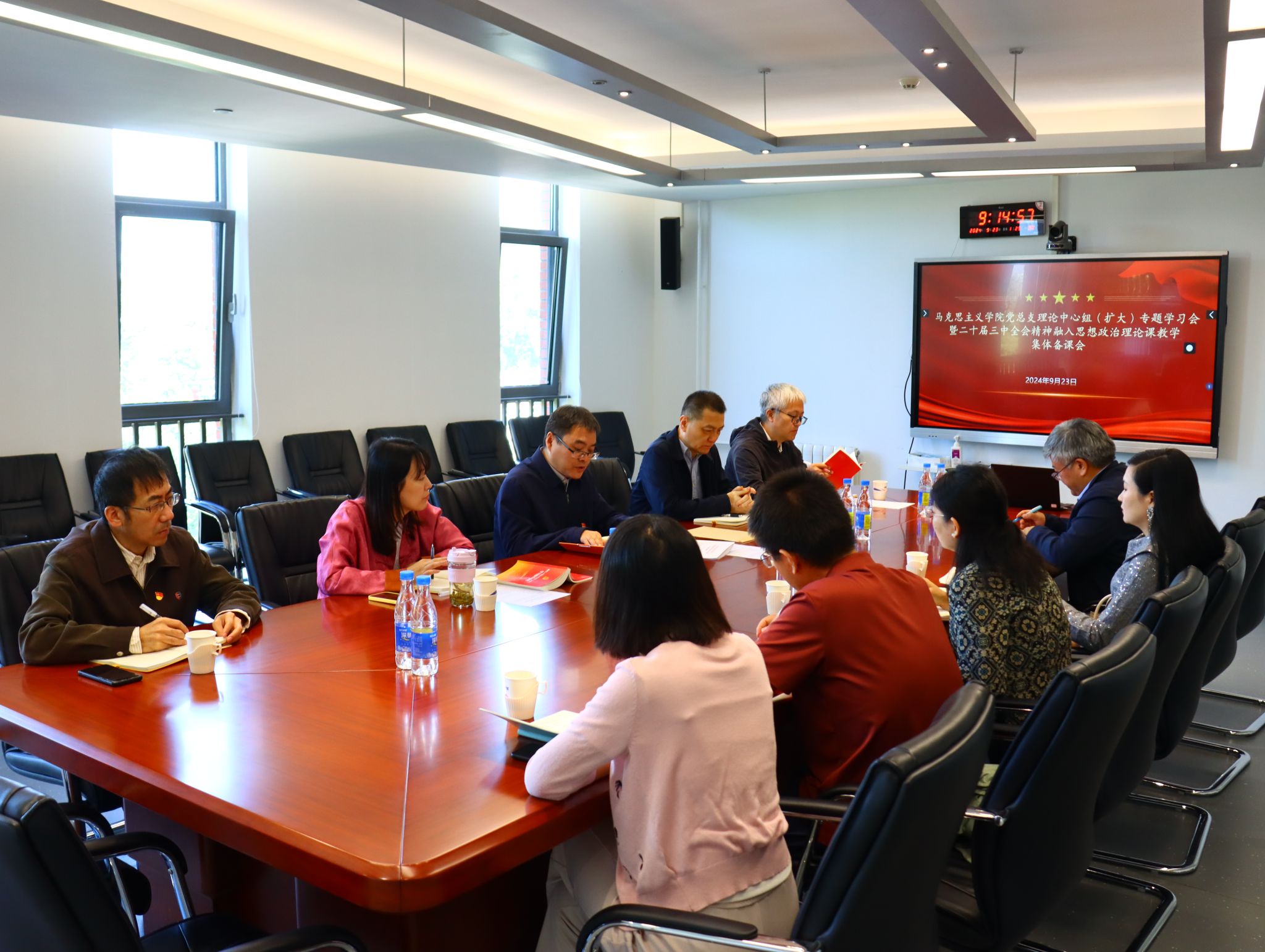 为学习贯彻党的二十届三中全会精神和全国教育大会精神,进一步推动党的二十届三中全会精神有机融入思政课教学,9月23日,开云kaiyun官网召开党总支理论中心组(扩大)专题学习会暨党的二十届三中全会精神融入思政课教学集体备课会。学院党政班子成员,理论学习中心组成员、各教研室主任、教工党支部书记、学生党支部书记参加会议。会议由党总支委员、副院长王曼倩主持。